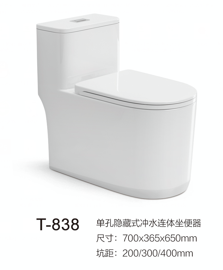编号:T-838尺寸:700*365*650mm名称:描述:单孔隐藏式冲水 连体 坐便器